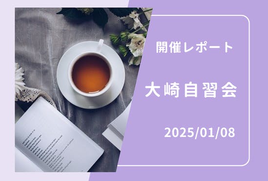 こんにちは。ファシリテーターのシオミです。1月8日に行った大崎自習会の様子を以下に書きます。目次1.タイムテーブル2.学習・作業内容3.感想1.タイムテーブル今回は下記のタイムテーブルで開催しました。19:00 カフェに集合/座席の確保/飲み物を買う19:05 簡単な自己紹介等、自習スタート2...