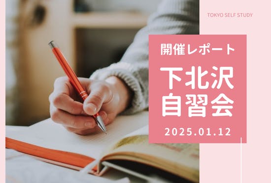 こんにちは!ファシリテーターのおくいです!今回は、1/12(日)に開催した下北沢自習会の開催報告をさせていただきます。目次1.タイムスケジュール2.勉強・作業内容3.感想1.タイムスケジュール今回は下記のタイムスケジュールで開催しました。08:30 カフェに集合08:40 簡単な自己紹介等08...