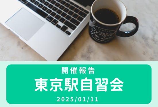 こんにちは。ファシリテーターのシオミです。1月11日に行った東京駅自習会の様子を以下に書きます。目次1.タイムテーブル2.学習・作業内容3.感想1.タイムテーブル今回は下記のタイムテーブルで開催しました。08:00 カフェに集合08:05 簡単な自己紹介等08:10 自習スタート09:00 休...