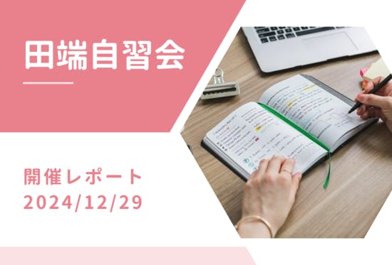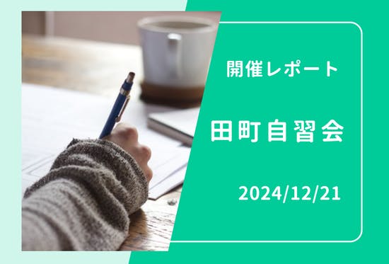 こんにちは!ファシリテーターの金子です。12月21日(土)に開催した田町自習会の開催報告をします。目次1.タイムスケジュール2.自習内容3.感想1.タイムスケジュール今回は下記のタイムスケジュールで開催しました。08:00 集合/自習スタート17:00 自習会終了2.自習内容主催を含めて本日は...