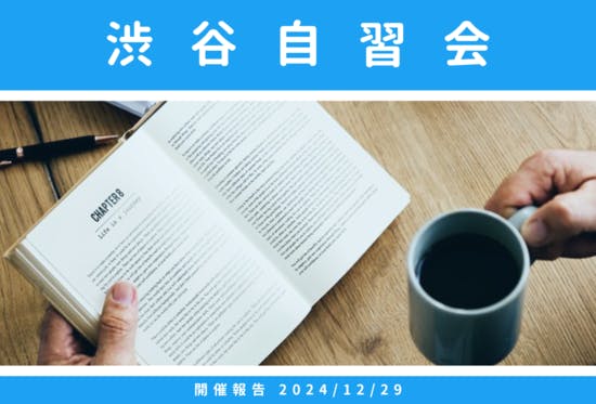 こんにちは! ファシリテーターのさとこです!今回は12月29日に開催した渋谷自習会の開催報告をしたいと思います。目次1.タイムスケジュール2.勉強・作業内容3.感想1.タイムスケジュール今回は下記のタイムスケジュールで開催しました。08:30 カフェに集合(飲み物購入)08:40 自習スタート...
