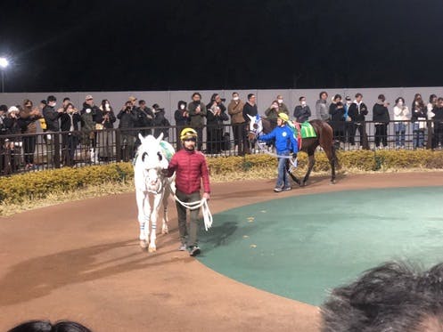 2025年1月2日 レクランスリール 3着(名古屋11R)現在、名古屋競馬のB級で、最も強い2頭に続く、3着と、持ち前の勝負根性で、力をみせてくれました。初めての距離2000mも、最後までよく頑張りました。馬主の現地観戦での成績は、2着・2着・2着・3着と、複勝率100%が続いております。次は...