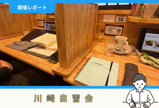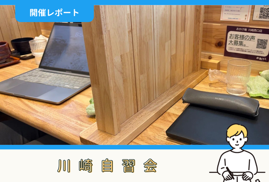 こんにちは!ファシリテーターのロッシーです(^▽^)/4月5日(日)に開催した川崎自習会の報告をします。目次1.タイムスケジュール2.勉強・作業内容3.感想参加申込みはこちら!1.タイムスケジュール今回は下記のタイムスケジュールで開催しました。07:00 カフェに集合/座席の確保/飲み物を買う...