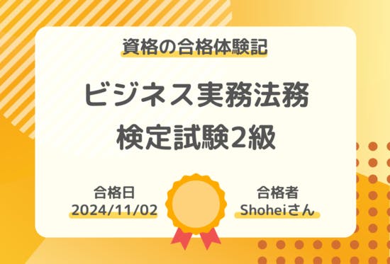 こんにちは!コミュニティメンバーのShoheiです。2024年11月2日に受験した第56回ビジネス実務法務検定試験2級に合格しましたので、報告します。結果は100点満点中の87点(70点以上で合格)でした。目次1.学習・受験状況2.受験理由3.試験の感想4.合格に向けて意識したこと5.勉強方法...