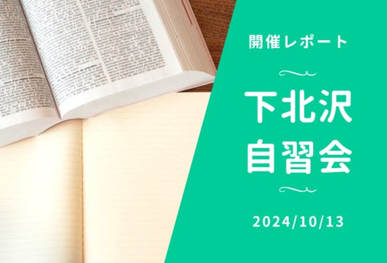 こんにちは!ファシリテーターのおくいです!今回は、10/13(日)に開催した下北沢自習会の開催報告をさせていただきます。目次1.タイムスケジュール2.勉強・作業内容3.感想1.タイムスケジュール今回は下記のタイムスケジュールで開催しました。08:30 カフェに集合08:40 簡単な自己紹介等0...
