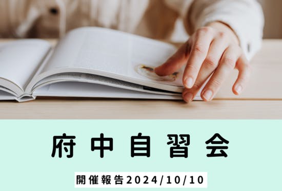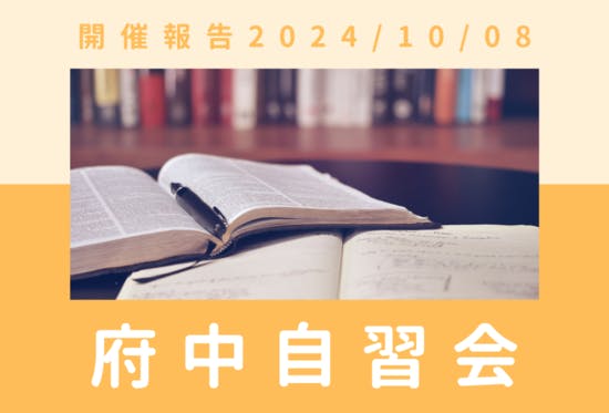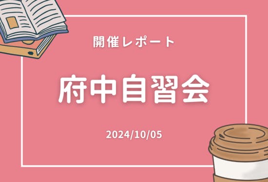こんにちは!ファシリテーターのなりかんです!10月8日(火)夜に開催した府中自習会の報告をします。目次1.タイムスケジュール2.勉強・作業内容3.感想1.タイムスケジュール今回は下記のスケジュールで開催しました。19:00 カフェに集合(飲み物を買って席へ)19:05 簡単な自己紹介・目標共有...