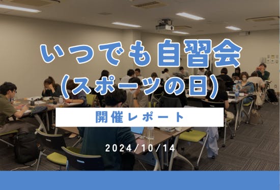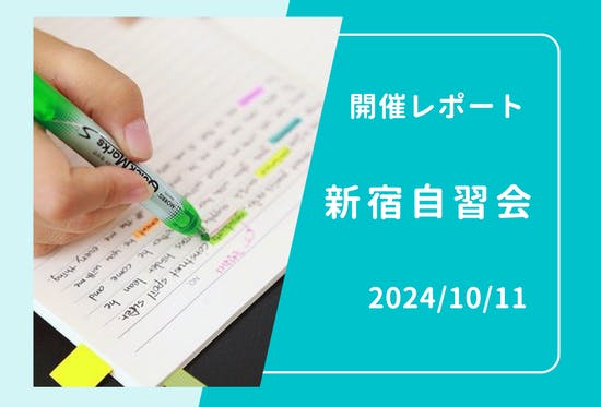 こんにちは!コミュニティマネージャーの古岩井です(^▽^)/10/14(月)に開催したいつでも自習会@日比谷の開催報告を致します。目次1.いつでも自習会って何?2.タイムスケジュール3.勉強・作業内容4.感想1.いつでも自習会って何?いつでも自習会とはレンタルスペース等を貸し切って、1日かけて...