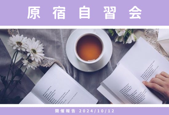 こんにちは!ファシリテーターのおくいです!今回は、10/12(土)に開催した下北沢自習会の開催報告をさせていただきます。目次1.タイムスケジュール2.勉強・作業内容3.感想1.タイムスケジュール今回は下記のタイムスケジュールで開催しました。08:30 カフェに集合08:40 簡単な自己紹介等0...