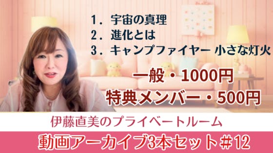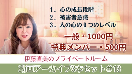伊藤直美さんの撮りおろし動画3本セット#13伊藤直美のプライベートルームにて過去に公開された動画です。*【伊藤直美のプライベートルーム 】のメンバーさんは、半額の500円でご購入いただけます。【コンテンツ 】直美さん撮りおろしの動画3本セットです。心の成長段階、レベルについてのお話です。自分の...