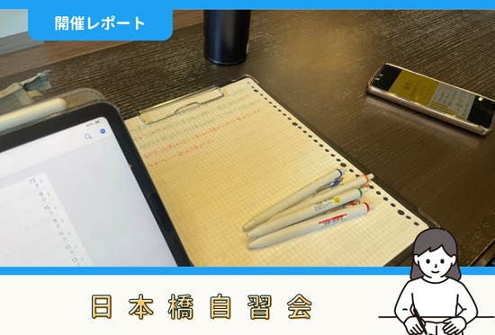 こんにちは!ファシリテーターのしょーたろーです(*^ω^*)10月23日(木)に開催した日本橋自習会の報告をします。目次1.タイムスケジュール2.勉強・作業内容3.感想参加申込みはこちら!1.タイムスケジュール今回は下記のタイムスケジュールで開催しました。13:00 開催場所に集合13:05 ...