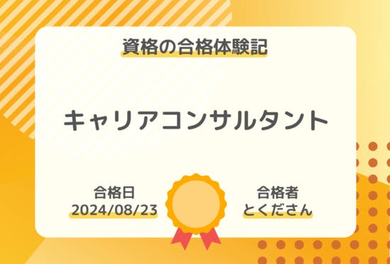 みなさん、お疲れ様です。ファシリテーターのとくだと申します。2024年7月、第26回国家資格キャリアコンサルタント試験を受験し、完全合格(筆記・実技同時合格)しましたのでご報告します。転職活動をしながら勉強したため、今回はすべての科目に対して納得がいくような対策はできませんでした。また実技対策...
