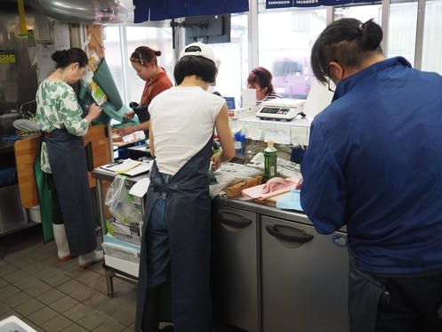 写真:和気あいあいとしているけれど真剣なサカナヤマルカマの作業場。今日は料理を学びたいとわがままを言ったら……。※本記事は取材先のご希望で無料公開に設定します。お楽しみいただけると幸いです。みんなと一緒に働く中で学ぶべきことを見つける場。それがサカナヤマルカマ!「大宮くん! ここは自分が学びた...