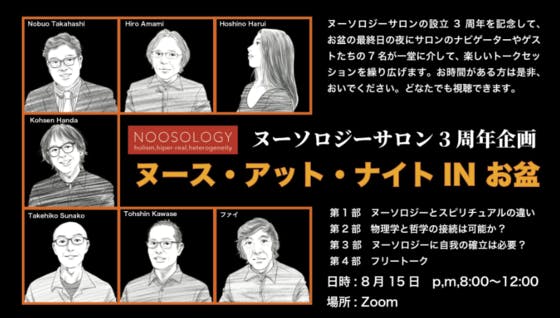 こんばんは。島津です。昨日行われたヌーソロジーサロン3周年企画「ヌース・アット・ナイト IN お盆」の録画です。お待たせいたしました。各コーナーとも非常に深く面白く、3周年記念にふさわしい、楽しいライブになったと思います。タイムテーブルは以下のようになりました第1部 開始~1:05:30ヌーソ...