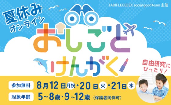 みなさんこんにちは!本日はタビフリークメンバーが運営&登壇するオンラインツアーのご紹介です(*‘ω‘ *)TABIFLEEEEEK(タビフリーク) Social Good Teamが贈る夏の特別企画!【特別企画】夏休みオンラインおしごとけんがく【参加無料】【対象年齢5-12歳向け】予約受付中で...