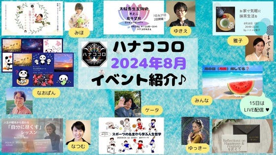 みなさま、こんにちは!!ハナコロなつむです。夏!夏!夏がやってくるーーーー!!暑い毎日、いかがお過ごしですか♪夏といえば夏休み。子どものころは夏休みの宿題なんてありましたが、おとなになっても、「なにかに取り組む夏」なんて、素敵じゃないですか?ハナココロなら!からだのことからこころのこと、8月は...