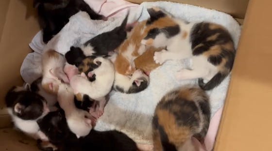 保護依頼があり、段ボールに入れられて来た子猫の数は16匹でした。「軒下に野良猫が赤ちゃんを産んで声がする、姿はまだ確認してない、親猫もいないみたい」とのことだったので、急いで連れてきてもらうようお願いしたら、どうみても一腹ではない大きさの違う子猫たちが16匹もいました。よくよく思い出すと「家の...