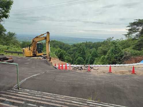 大観峯順調に工事中です!四谷尾&柿沢地区からの林道は合流地点から通行止めです!車では山頂駐車場に行けません!この工事が本年末まで続きます!!!
