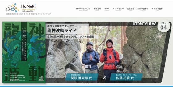 自転車活用の新たなスタイルを発信するオウンドメディア「HaNeRi」さん!そのTOPページに大きく掲載頂きました!!!是非 奈良県は宇陀市の高次元、『龍神波動ツアー』へ!!!これを体験せずに辰年は始まりません!(笑)