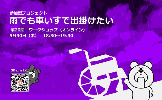 こんにちは! GKモノ/コトLabです!「雨でも車いすで出掛けたい」第20回オンラインワークショップのお知らせです。5月20日(木)18:30ー19:30です。現在、製品サイズを検討しておりましたが、事業を成立性などそのために何を準備しないといけないかなど、並行して株式会社モノコトバードのメン...