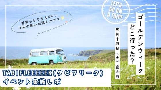 こんにちは!TABIFLEEEEEK運営のsumikaです。みなさんどんなゴールデンウィークを過ごしましたか?TABIFLEEEEEKでは旅を軸にさまざまなテーマでオンラインイベントを実施しています( ˘ω˘ )昨日「ゴールデンウィークどこ行った?」をテーマにイベントを実施しました!旅好きのメ...
