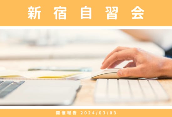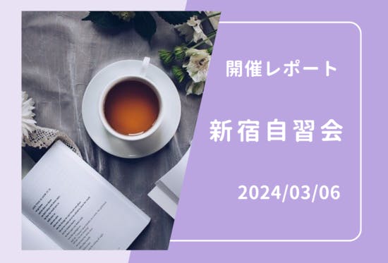 こんにちは!ファシリテーターのおくいです!今回は、3/3(日)に開催した新宿自習会の開催報告をさせていただきます。目次1.タイムスケジュール2.勉強・作業内容3.感想1.タイムスケジュール今回は下記のタイムスケジュールで開催しました。18:00 カフェに集合18:10 簡単な自己紹介等18:1...