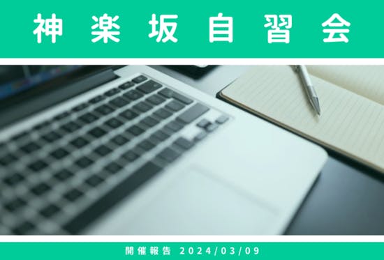 こんにちは!ファシリテーターのイシダです(^^) 今回は3/9(土)に開催した神楽坂自習会の開催報告をしたいと思います。目次1.タイムスケジュール2.勉強・作業内容3.感想1.タイムスケジュール今回は下記のスケジュールで開催しました。~08:30 カフェに集合(飲み物を買って席へ)08:35 ...