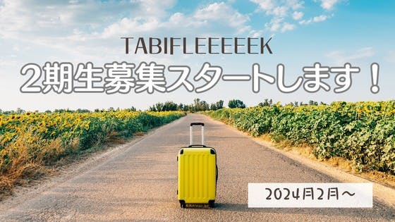 みなさんこんにちは!(^^)!今日から2月が始まりましたね!TABIFLEEEEEK運営のsumikaです。この度気分を新たにメンバー特典を一新いたしました!(現在3コースご用意しています(*´ω`*) )これに伴い2024年1月までにご入会いただいたメンバーのみなさんはTABIFLEEEEE...