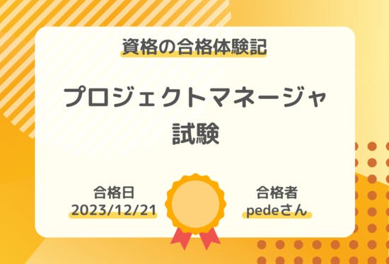 こんにちは!コミュニティメンバーのpedeです。2023年10月に受験した情報処理技術者のプロジェクトマネージャ試験に合格したので、その報告をします。目次1.学習・受験状況2.受験理由3.試験の感想4.合格に向けて意識したこと5.勉強方法で上手くいったと思ったこと6.勉強方法で改善したいと思っ...