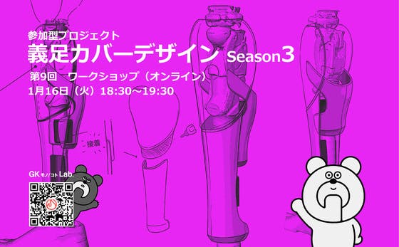 こんにちは! GKモノ/コトLab.です。義足カバーデザイン Season3 第8回オンラインワークショップ1月16日(火)18:30-19:30で開催します。義足カバーデザインもSeason3になり、大腿義足用の開発が進捗しています。実機テスト用のモデルを当事者に装着してもらいながら実装テス...