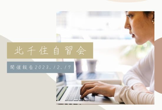 こんにちは!ファシリテーターの笠井です(^^)今回は12/17(日)に開催した北千住自習会の開催報告をしたいと思います。目次1.タイムスケジュール2.勉強・作業内容3.感想1.タイムスケジュール今回は下記のタイムスケジュールで開催しました。09:00 カフェに集合09:10 簡単な自己紹介等0...