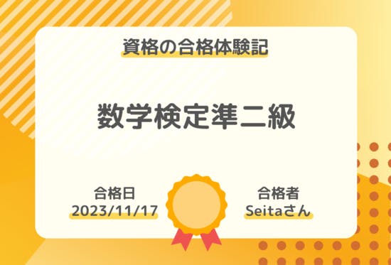こんにちは!コミュニティメンバーのSeitaです。2023年11月に数学検定準二級に合格しましたので、その報告をします^^目次1.学習・受験状況2.受験理由3.試験の感想4.合格に向けて意識したこと5.勉強方法で上手くいったと思ったこと6.勉強方法で改善したいと思ったこと7.具体的な勉強方法8...