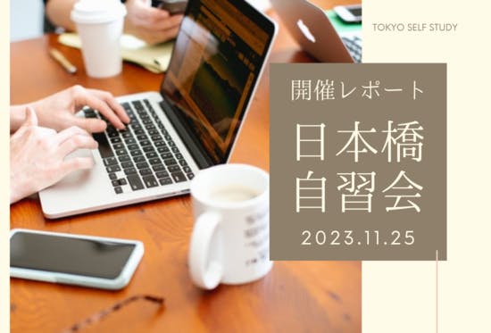 こんにちは! ファシリテーターの古田土です(^^) 今回は11/25(土)に開催した日本橋自習会の開催報告をしたいと思います。 目次1.タイムスケジュール 2.勉強・作業内容 3.感想 1.タイムスケジュール今回は下記のタイムスケジュールで開催しました。08:55 カフェに集合(お店の前でお待...