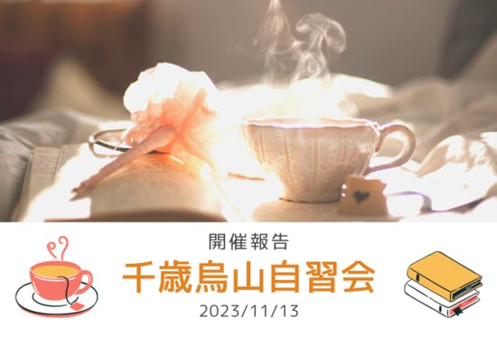 こんにちは!ファシリテーターのさとこです!11月13日(月)夜に開催した千歳烏山の報告をします。目次1.当日のスケジュール2.自習内容3.感想1.当日のスケジュール19:00 カフェに集合(飲み物を買って席へ)19:05 簡単な自己紹介・目標共有19:10 自習開始21:00 達成度の振返り・...