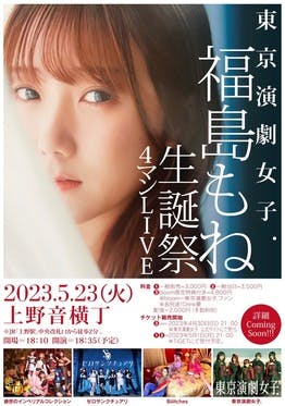 2023年5月23日(火) 上野音横丁東京演劇女子. 福島もね 生誕祭4マンLIVEbloom限定特典付き=4,800円本日4月30日(日) 21:00より販売を開始しました。東京演劇女子. 公式サイト皆様のお越しを福島もねはもとより、メンバー一同心よりお待ちいたしております。