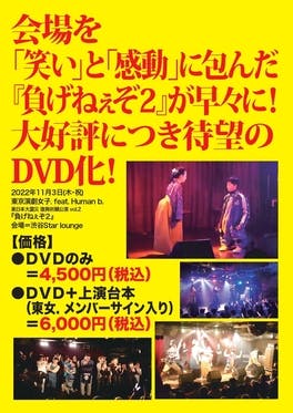 こちらは早々に!2023年3月11日周辺で再演致します!!公演をご覧下さった方は復習用、思い出用に…ご覧頂けなかった方、次回初めて「観に行くかも」というかたは予習用に!是非!!!!!『負げねぇぞ2』DVDのみ『負げねぇぞ2』DVD+上演台本(東女. メンバーサイン入り)
