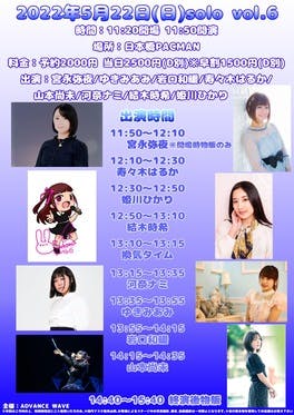 5月22日(日)東京演劇女子.メンバーの 山本尚未 が単独出演致します下記のライブ…何と…まだ2回目の出演にも関わらず、トリ に。『solo vol.6』開場:11:30 開演:11:50場所:日本橋PACMAN料金:予約2,000円 当日2,500円 ※早割1500円 各1D別※場内マス...