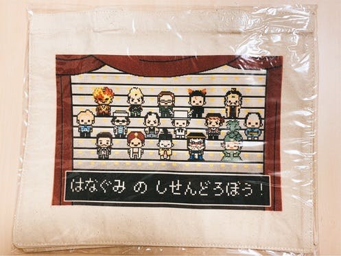 【グッズ販売】トートバッグ小サイズのご案内たっそ組長が宝塚歌劇団在団時に演じた役のドット絵勢揃いのトートバッグです。商品は、サロン会員登録時に記入して頂いた住所へ配送させていただきます。