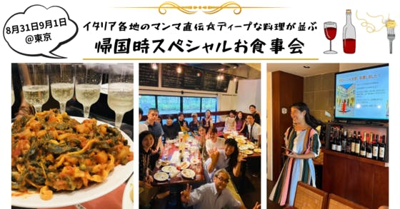 皆様、一時帰国のお知らせです!!毎年大盛り上がりの一時帰国スペシャルお食事会&実地料理教室、2024年は【8月31日&9月1日】に開催します!「イタリア全20州、マンマを訪ねて3000里」、各地を回ってイタリアのマンマから直接習ったディープな郷土料理を振る舞います!今年はスペシャルゲストとして...