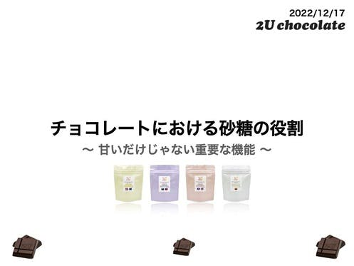 12月度のオンライン会は、12/17(土) 20:30 より実施します。今月のテーマは「 チョコレートにおける砂糖の役割 〜甘いだけじゃない重要な機能〜 」です。チョコレートはカカオを原料に作られますが、もう一つの重要な原料が「砂糖」。一見するとただ甘味を付与するためだけに使用されているように...