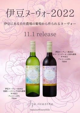 ご支援者の皆さま、こんちには!先日11月1日より、中伊豆ヌーヴォー2022の発売を開始いたしました。ヌーヴォーとは?その年に収穫したばかりのぶどうを醸造して造った新酒のワインです。赤・白共にやや甘口で、すっきりとした喉ごしが特徴のワインです。飲みやすいので、アルコールが苦手な方にもおすすめでき...