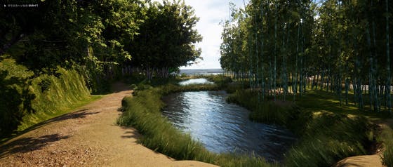 駅前の通り、棚田が広がる田園地帯など全体のレイアウトをラフに組んで構図をチェックする作業を行ったのでそのスクリーンショットをアップします。 とてもラフなのですが、ここで良い構図が出るよう空間を調整することが大事なのでしばらく時間を費やします。 もうしばらくこの作業を続けて、レイアウトが確定...