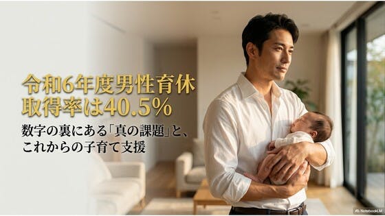 厚生労働省によると、令和6年の男性育休取得率は40.5%。 前年度より10%以上向上という素晴らしい成果です。 けれど、その裏で問題点も浮上してきています。 動画で解説しています。※動画は地域情報サイトまいぷれ津山市の記事を元にAI:NotebookLMにて作成。一部誤字や間違った表現がある可...