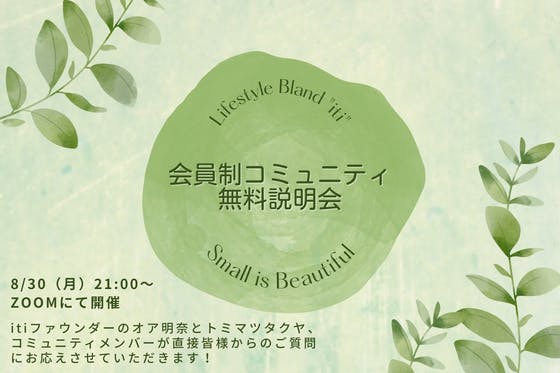 先日、iti のインスタライブ配信をご覧いただいた皆さま、本当にありがとうございました(^^) iti は2年目に突入し、コミュニティメンバーが主導となって、SNS発信やイベント企画など自走するコミュニティへと動き出しました。 そしてiti の活動において、今後の目玉となる『iti vil...