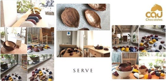 自社農園で採れたカカオの実の皮(ポッド)を使ったお皿の撮影をしました。場所は、吉祥寺の家具屋SERVEさんにて行いました。イタヤカエデを使った家具では超有名店です。SERVEホームページ http://www.serve.co.jp/