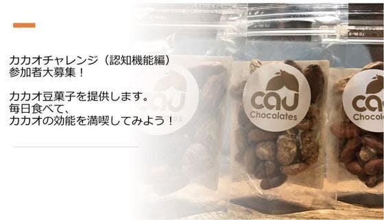 CAUチョコレートジャパンでは、カカオ豆を使用した認知機能向上を目指しています。カカオ豆にはカカオポリフェノールが多く含まれています。今までに存在する研究において、多くの効能がある中、認知機能を向上させるといった研究があり、認知症の予防にも良いと言われています。今回私たちは、カカオの効能をより...