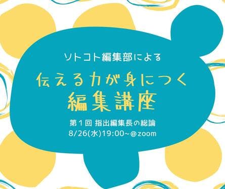 「編集」についてソトコト編集部が突っ込んでお届けする講座シリーズです。月一回のペースで、毎回編集部の一人が、写真の撮り方、文章の書き方、おもしろいネタの集め方など、テーマに沿って皆さんにお伝えしていきます。第1回目は、指出編集長による編集総論です!伝えるための文章の書き方、写真の撮り方など、い...