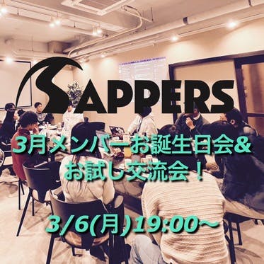 今回もSAPPERS既存メンバーと、コミュニティに興味を持ってくれている方がお試しで参加できる交流会でした!ピザをデリバリーし、2月メンバーお誕生日会も同時に開催しました!今回から名札を活用して、みんなの名前がわかるように自己紹介タイムの後は飲ミーティング!今回の議題は・運営費用の使い道・休会...