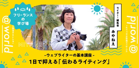 ライター/編集者として活躍されている、みやねえさんを講師にお招きして、講座を開催しました。ライターとして活動している人はもちろん、ライティングに興味があるメンバーが20人以上参加。2時間超えの超充実した講座でした。参考になる記事や本の紹介もいただき、また学びが広がりそうです。@world参加メ...