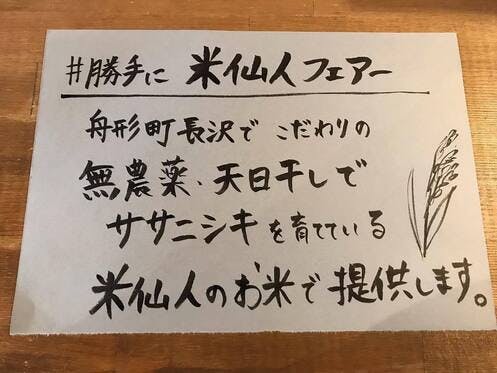モグラーの秘密基地・・・「万場町 のくらし」ではただいま、かぁちゃん定食やカレーにて、モグラーでもある米仙人のお米を使っています!山形県最上郡舟形町長沢で、こだわりの無農薬・天日干し ササニシキを育てている #米仙人お米を噛み締め、米仙人に思いを馳せる時間よろしくお願いします〜♪