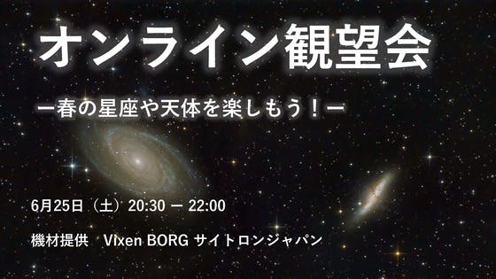 名取天文台のはたけです。6月25日(土)20時30分より、6月のオンライン観望会を配信いたします![春の星座や天体をたくさん観察します。参加無料でどなたでも気軽にご参加いただけます。【日時】6月25日(土)20時30分~22時 悪天時は6月26日(日)に延期【配信先】配信では、天体望遠鏡と自動...